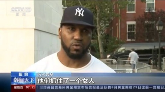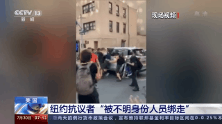 视频显示,在纽约曼哈顿的一场抗议活动中,一群身着便装的男子先是与一名女子在人行道上扭打,其中几名男子还恐吓并阻拦试图靠近的抗议民众;随后,这名女子被强行塞进一辆没有任何标识的面包车中;紧接着,几名警察赶到现场,将附近的围观人群推开。