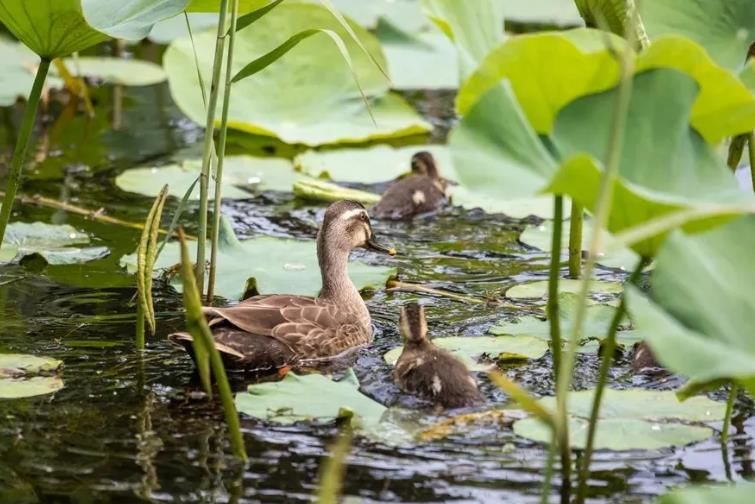 沙家浜湿地公园工作人员称,已连续四年观察到斑嘴鸭在园内育雏。除了斑嘴鸭外,白鹭、苍鹭、牛背鹭等常见的鹭鸟,也都在沙家浜湿地公园育雏。