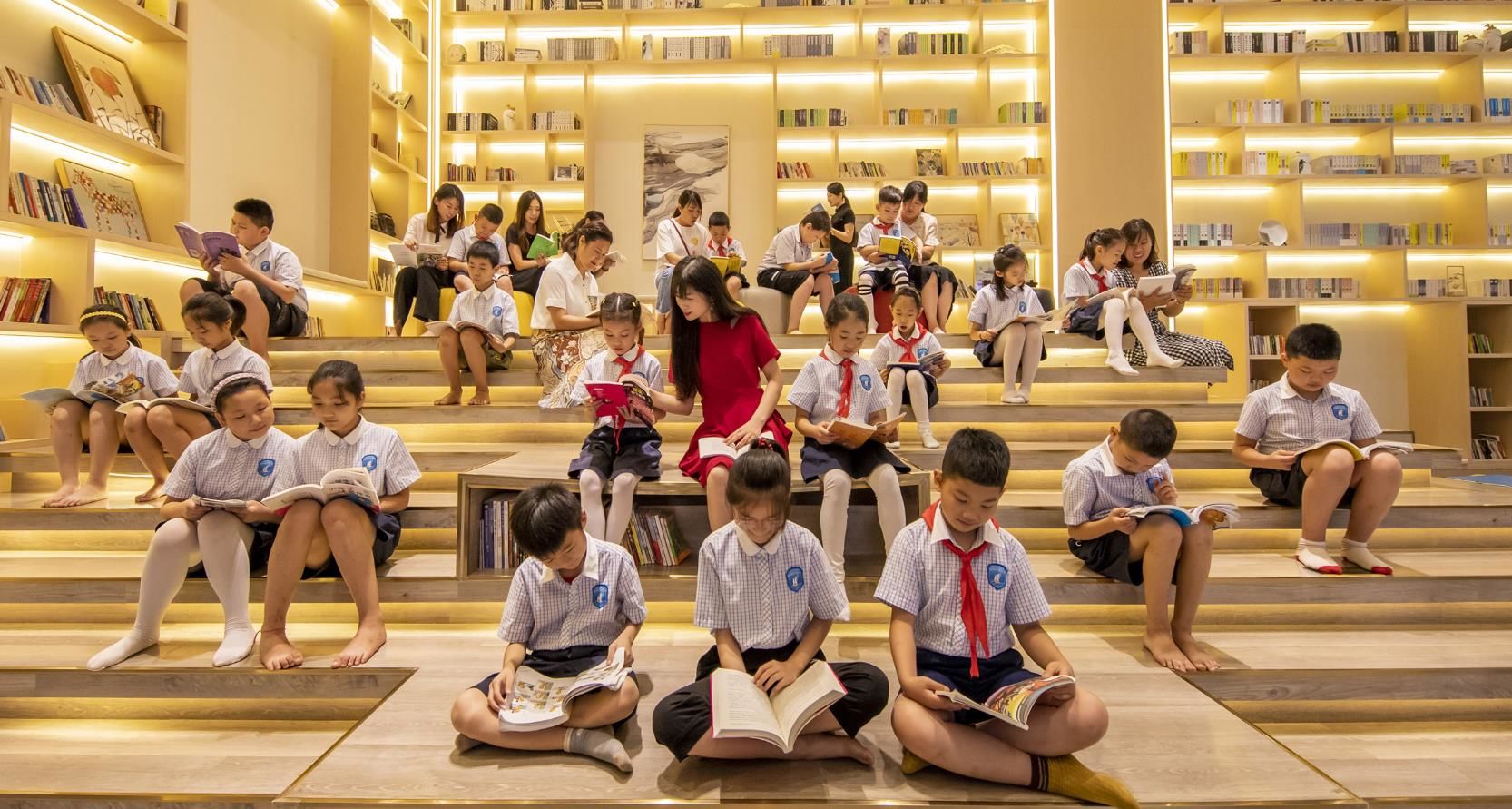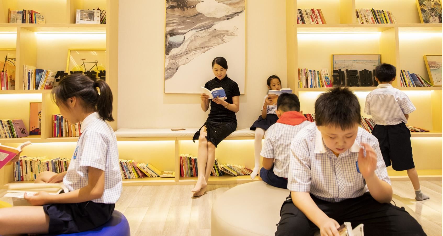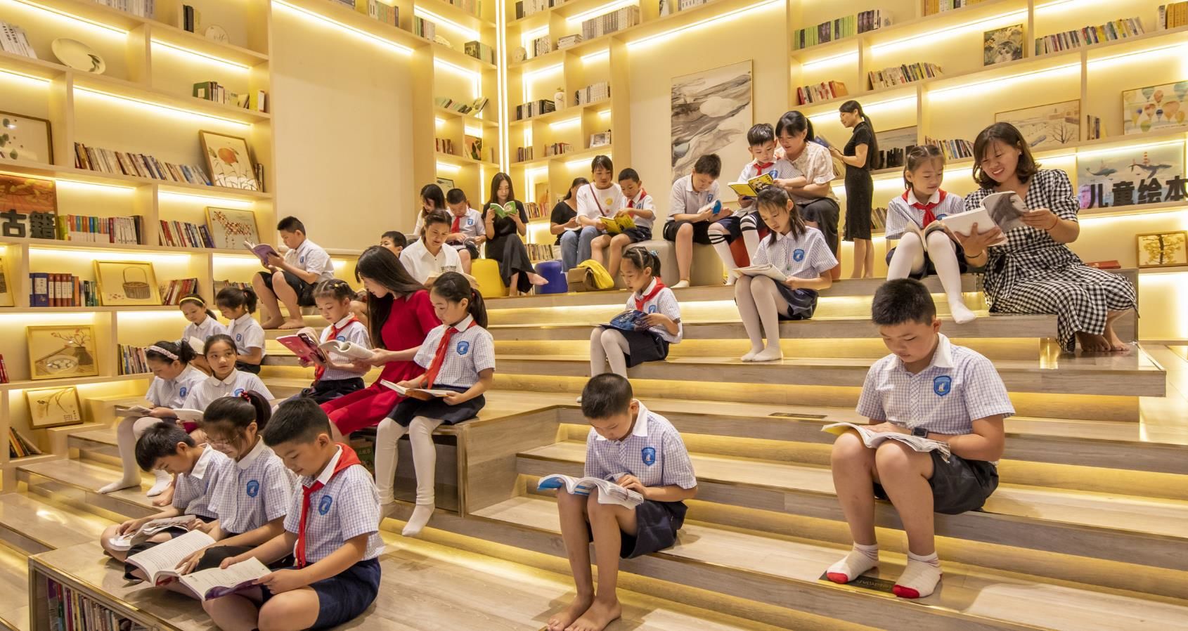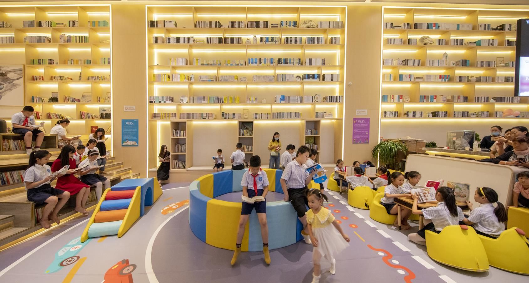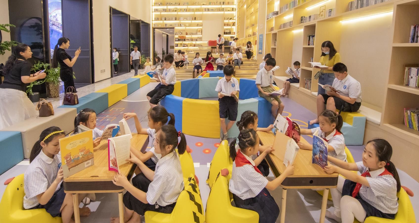 2020年7月27日,江苏省宿迁市泗洪县吾悦书社阅读大厅里空气凉爽,由该县衡山路实验学校组织的“暑期‘书虫’游书海”活动在这里拉开序幕。家长们带着孩子来到这里,徜徉书海,尽享浓浓书香,让孩子们过一个快乐的书香暑假。