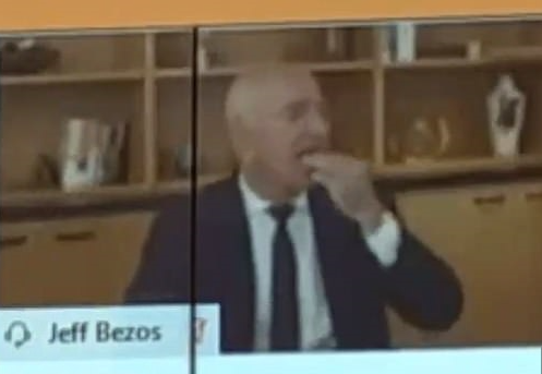 英国《每日邮报》29日报道称,在听证会上半段,贝佐斯的图像没有像其他人那样全屏显示,使得听证会陪审团不得不休息10分钟,以解决技术问题。这期间,贝佐斯被拍到在镜头前吃零食。