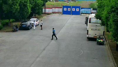 监控显示,十几秒后,西瓜摊摊主背着一名男子冲了出来,奋力地向外跑去。