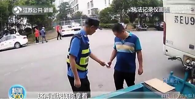 城管:你刚才也是做好人好事,这两百块钱你拿着,西瓜我们带回去了,我们买下来了。下次注意,这边不要摆摊,摆在这边影响交通的。