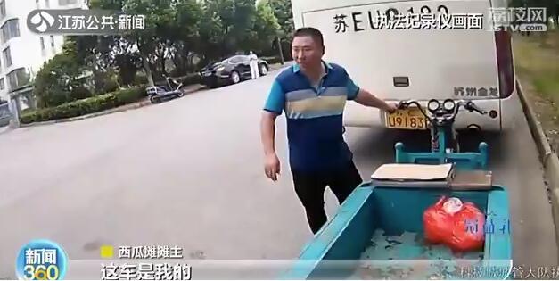 40分钟后,西瓜摊摊主回来了,看到站在三轮车旁的城管队员,有些不知所措,以为西瓜被查扣了。