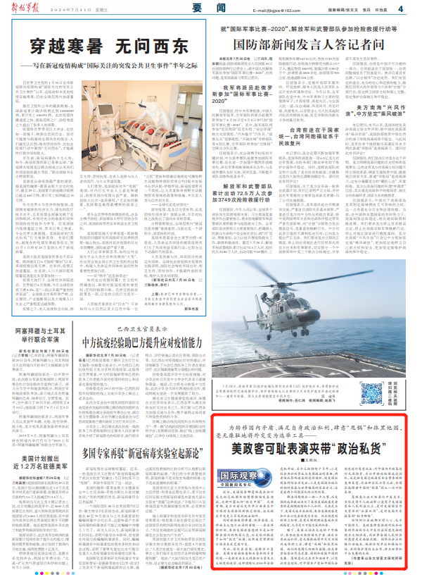 同时面临疫情肆虐、经济衰退、反种族主义怒火汹涌的窘境……在这样的时刻,某些美国政客想的不是如何解其国内的燃眉之急,而是依旧执迷于如何“改变”他国,这种违背常理的行径实在是荒唐可笑。