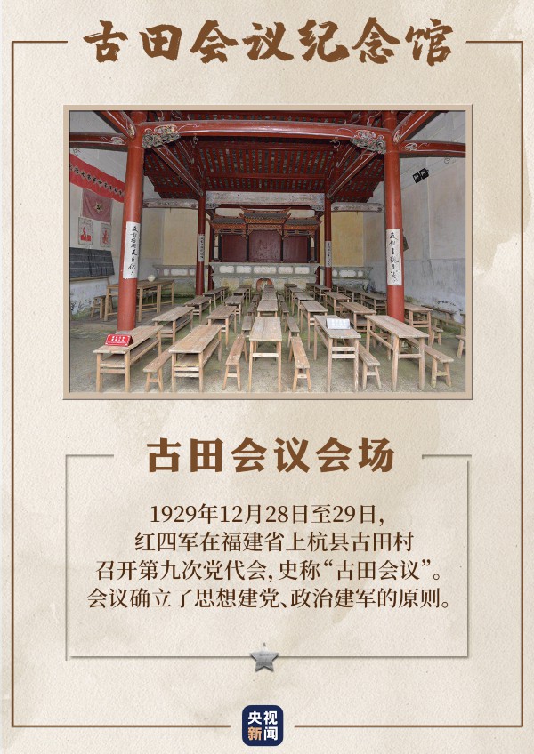 1929年12月28日至29日,天寒地冻,福建省古田镇溪背村廖氏宗祠的大厅却布置得热烈而庄重。在这里,毛泽东、朱德等人领导召开了中国共产党红军第四军第九次代表大会,史称古田会议。