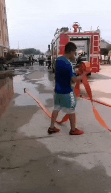 随后,张侠一边安排人报火警一边组织物业工作人员利用地下消火栓铺设水带灭火但水带连接上之后高度太低水枪只能喷射到部分室内区域