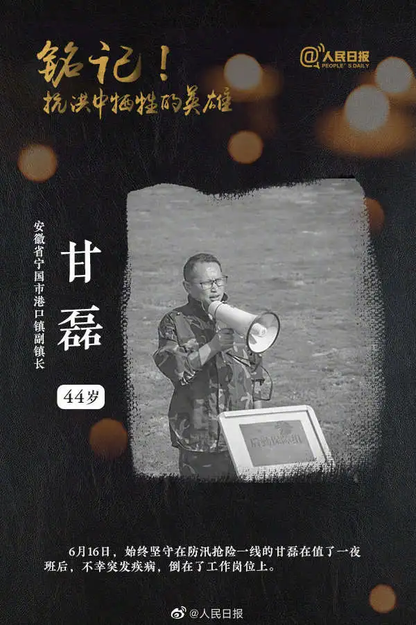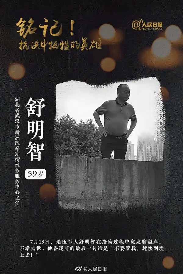 抗洪抢险一线,无数人日夜奋战,只为守护一方平安。洪水来袭,他们奋不顾身冲上前,甚至献出了宝贵生命。消防指挥员陈陆、防汛干部曹德芳、村支书刘水存、货运司机郑义……铭记抗洪中牺牲的英雄。愿所有的逆行者都能平安归来!