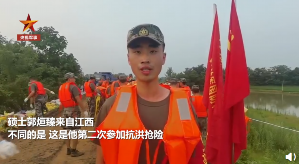 一位博士三年级的战士说:“在洪水面前哪有什么博士硕士我们上了堤坝都是保卫人民的战士!我们有信心一定能完成这次抗洪任务”