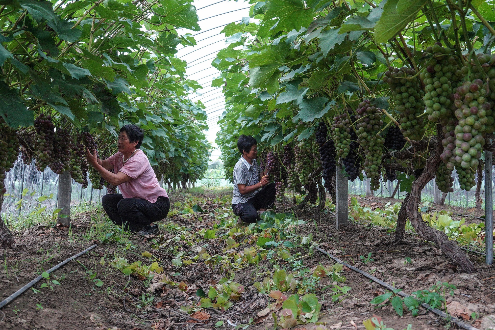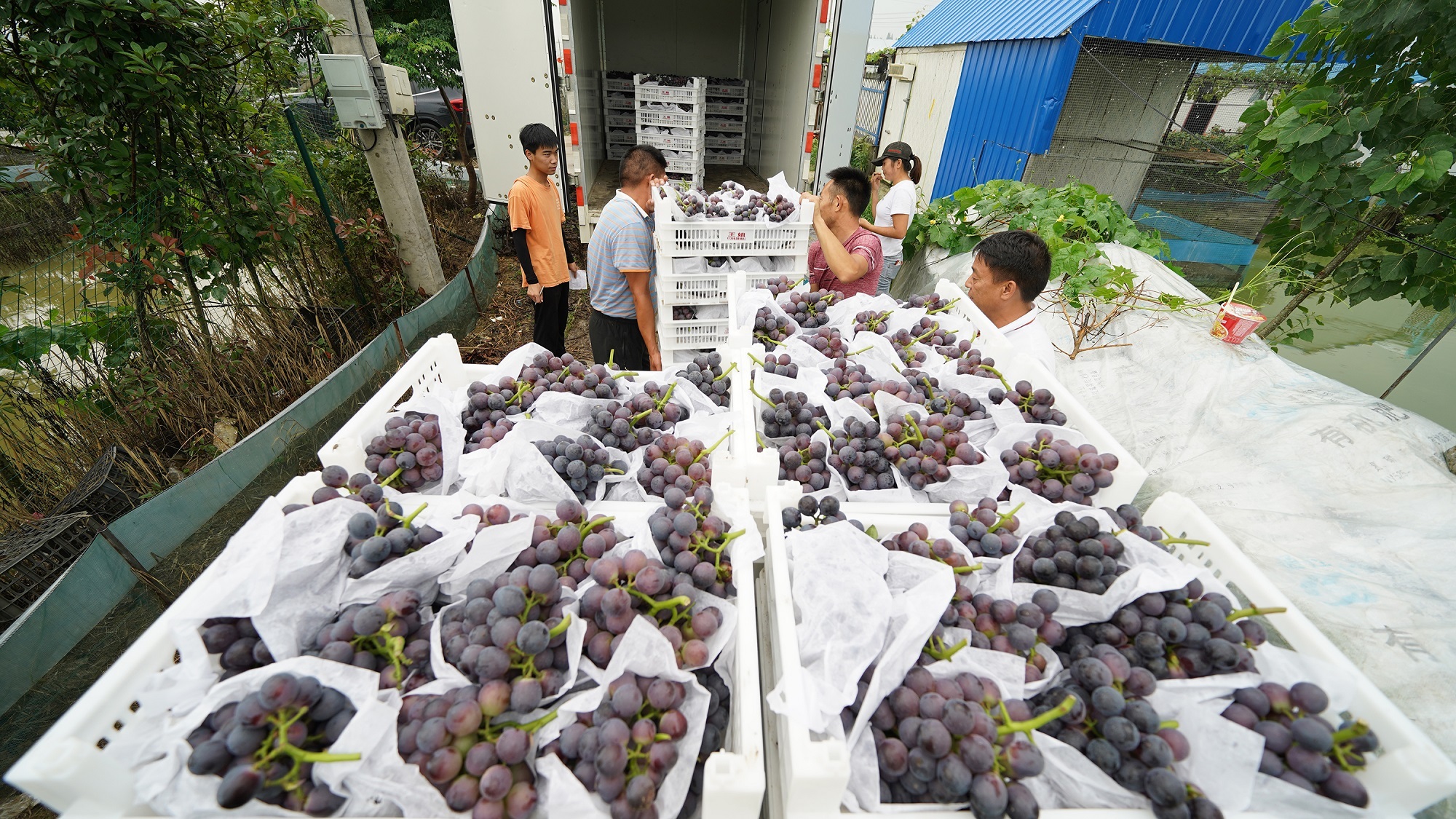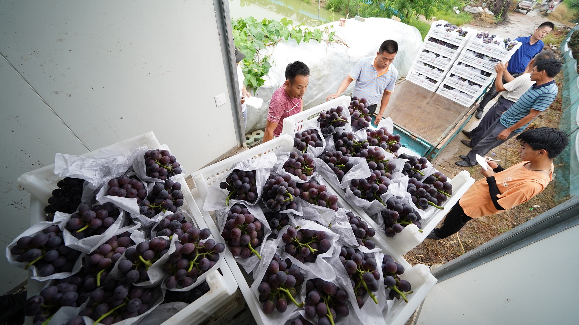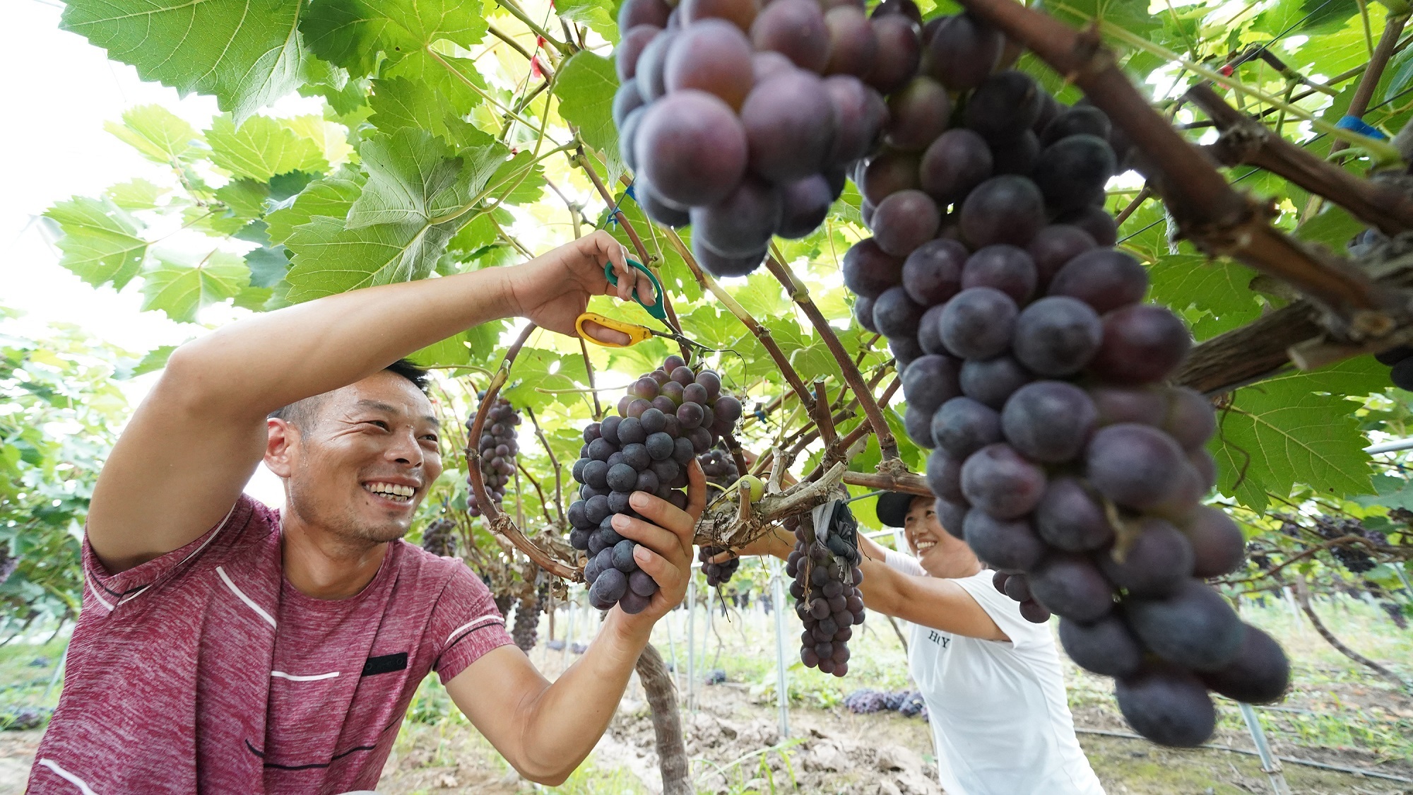 葡萄园内一派繁忙景象,果农们正在辛勤忙碌着,清理坏果、采摘葡萄、打包装箱,脸上满是丰收的喜悦。夏黑、巨峰、醉金香、阳光玫瑰等优质品种已经大面积“抢鲜”上市,各家采摘园也陆续开园迎客,采摘季将从现在一直持续到10月份。