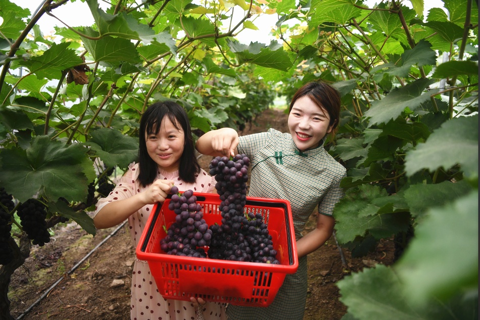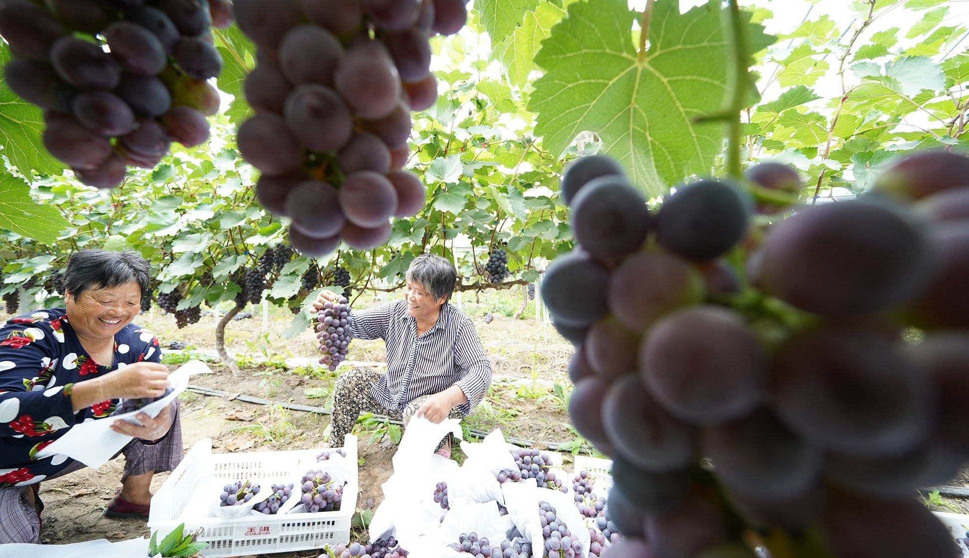 夏日炎炎,又到了葡萄飘香的季节。走进江苏省宿迁市宿城区陈集镇葡萄产业园,第一眼看见的,就是沉甸甸悬挂在枝头的葡萄,色彩斑斓,晶莹剔透,一口下去更是甜到心坎里。闻着热烈馥郁的果香,看着沐浴在阳光下的一排排葡萄架,这是一场让人幸福感爆棚的视觉盛宴。