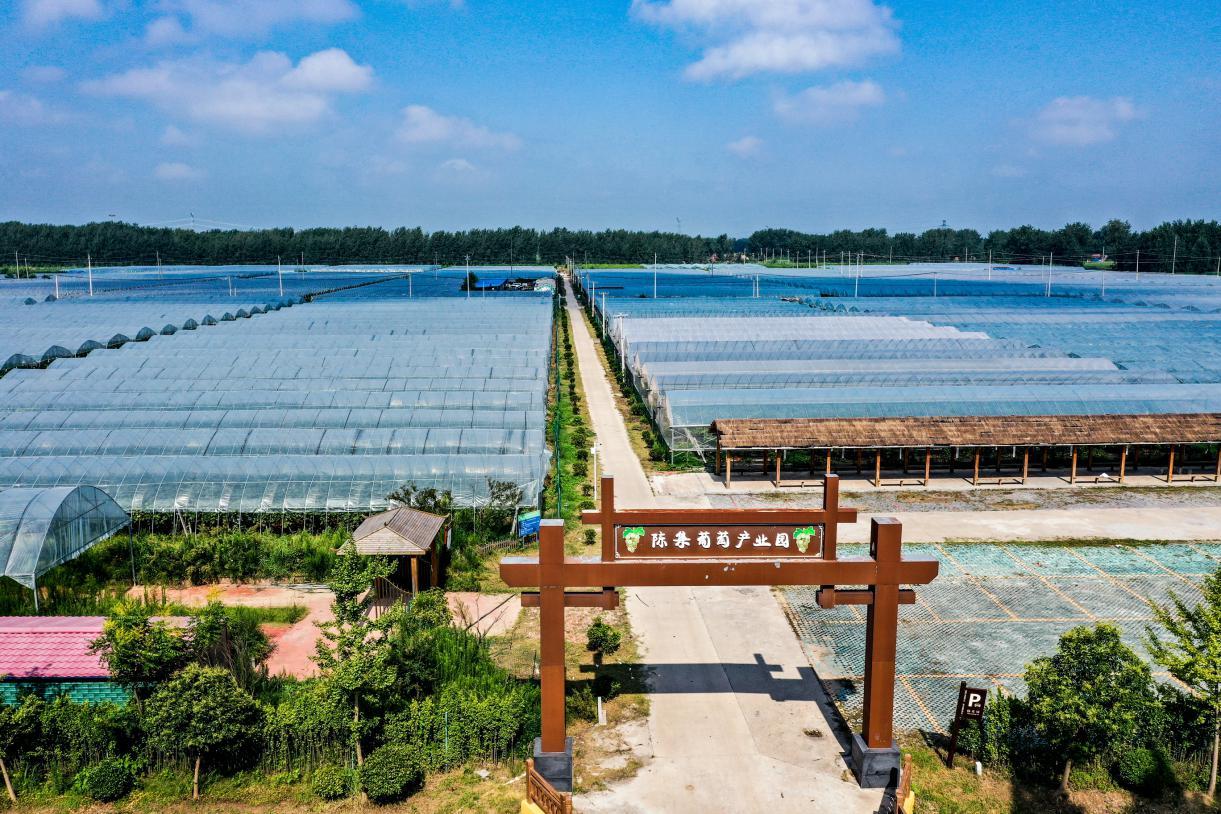 品牌强农,产业富农。如今,陈集葡萄产业园已建成2300亩,入驻36家家庭农场和4家合作社,种植20多个优质葡萄品种,带动当地近千余名群众在家门口实现就业创业。园内设有葡萄主题馆、仓储中心、果蔬保鲜库、家庭农场集群服务中心等基础设施,为种植户提供种苗繁育、技术培训、农资配送、仓储物流、包装设计、网络营销等一站式服务。
