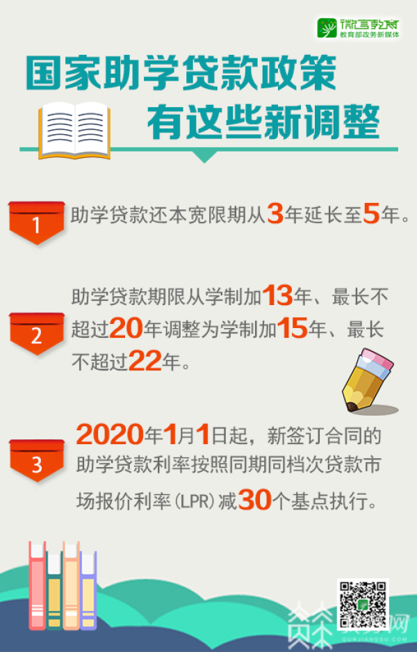 根据政策,家庭经济困难的全日制本专科生和研究生均可以申请国家助学贷款。本专科生每生每年是不超过8000元,研究生每生每年是不超过12,000元,贷款的期限最长不超过22年,财政对学生在校期间的贷款利息是全额补贴。张晓宁说,今年国家对助学贷款做了三个调整。“第一是对助学贷款的还本宽限期,从原来的3年延长到了5年。第二是助学贷款的期限,从原来的是学制加13年,最长不超过20年,调整到学制加15年,最长不超过22年。第三是助学贷款的利率,2020年1月1日起,新签订合同的助学贷款利率按照同期同档次贷款市场报价利率减30个基点执行。”