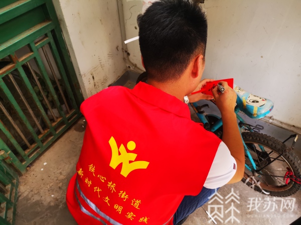 记者在现场看到,在清理僵尸车的过程中,社区配备了红橙黄蓝四色插牌,每种不同的颜色由网格员按照一定的规律来插牌。每辆“僵尸车”挂上不同颜色的插牌标识,方便居民日后寻找,从而减少不必要的矛盾。 “我们社区针对每个楼栋,每个楼栋四个单元我们用红黄蓝橙四个颜色,红色代表一单元。黄色代表二单元,以此类推的方法,我们对非机动车进行标注,几栋几单元, 后期方便大家认领,减少矛盾。”南京铁心桥街道景明佳园社区副书记诸华兵说。