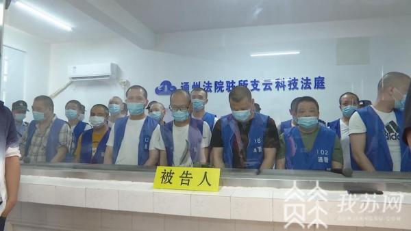 7月30日,南通通州法院在区看守所驻所法庭内对一起15人恶势力犯罪集团案件进行依法审判。