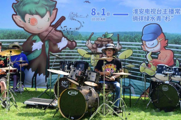 虽然天气炎热,但是景区音乐会的现场精彩不断,淮安电视台主持人常丽带您徜徉绿水青杉,各个景点演员和游客热情高涨。