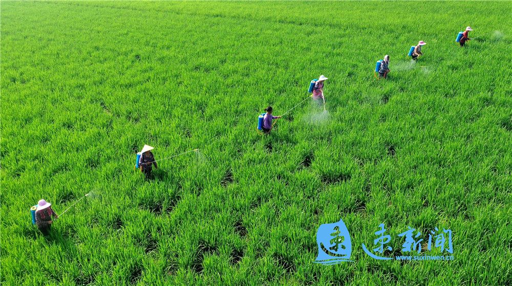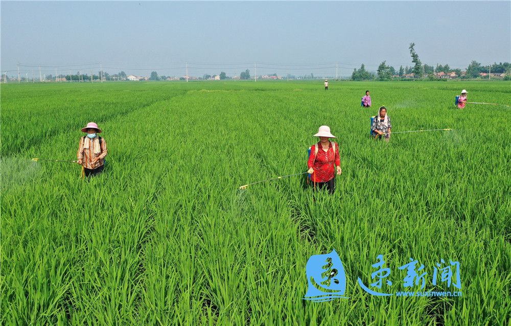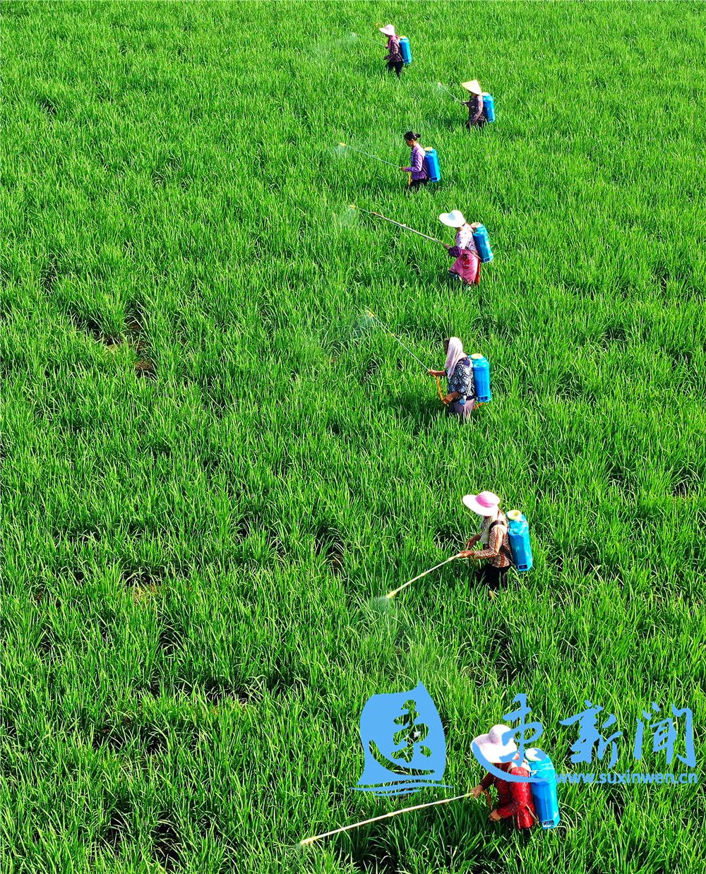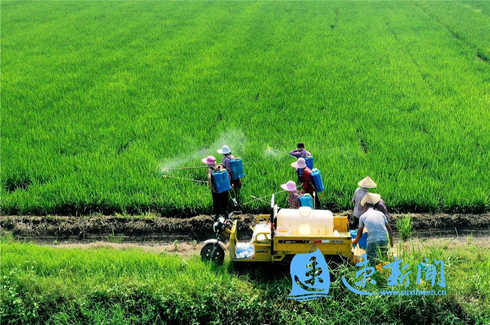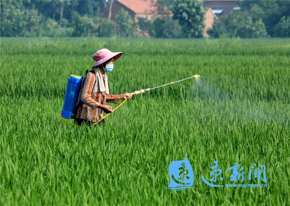 8月1日,沭阳县周集乡史洼村一个家庭农场组织人员对水稻统一喷施防治稻瘟病和稻纵卷叶螟药物。据当地农技人员介绍,因前一阶段天气雨水较多,农作物光照严重不足,影响了正常生长,特别是田间水稻极易产生病虫害。沭阳县农民抓住当前晴好天气,对水稻全面开展病虫害防治工作,为秋粮丰产打好基础。