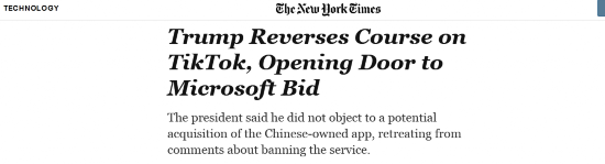 【明抢!特朗普:TikTok9月15日前不卖给美企就关门】
