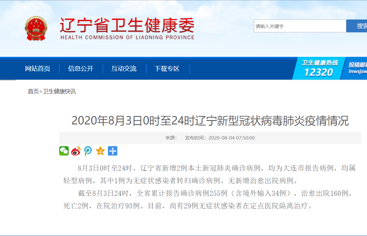 荔枝新闻讯 8月3日0时至24时,辽宁省新增2例本土新冠肺炎确诊病例,均为大连市报告病例,均属轻型病例,其中1例为无症状感染者转归确诊病例。无新增治愈出院病例。