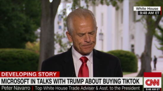 美国政府在急于封杀 “TikTok”(美国版“抖音)之际,又闹出了刷新人三观的一幕!昨晚,美国总统特朗普的贸易顾问皮特·纳瓦罗就此事接受美国媒体的采访。在被问到如何看待微软打算收购TikTok的业务时,纳瓦罗不仅表达了反对,甚至还对微软公司在中国的业务表达了强烈不满,认为微软应该从中国撤资……