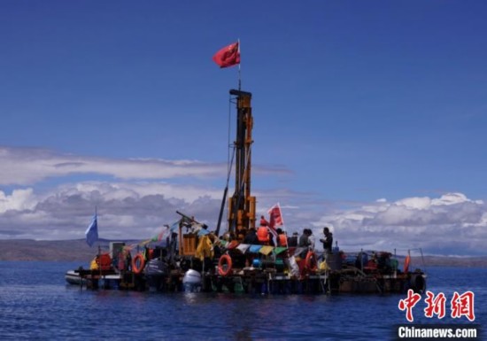 中国科学家成功钻取青藏高原湖泊最长岩芯(钻探深度达153.44米)。中科院青藏高原所 供图