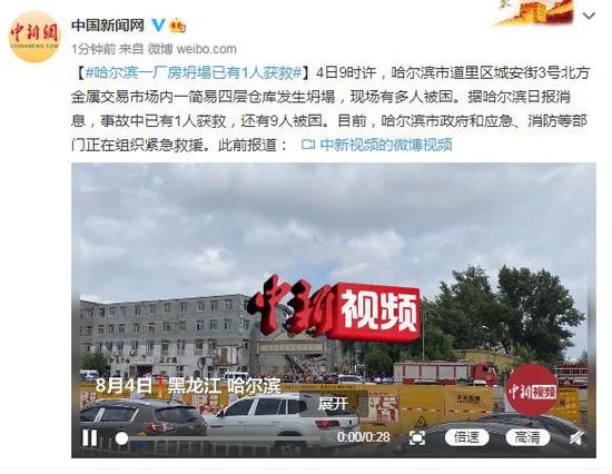 原标题:哈尔滨一厂房坍塌已有1人获救