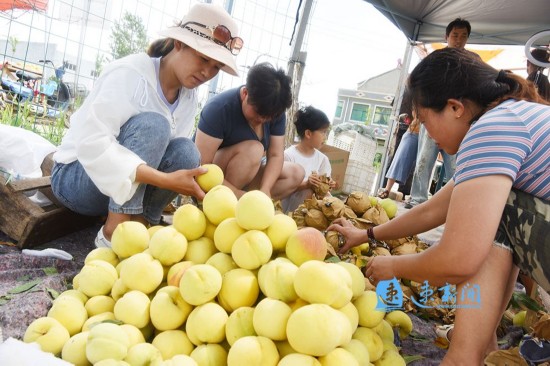 眼下正值黄桃成熟季节,孙园镇积极鼓励青年利用网络直播平台,向顾客直播黄桃采摘到装箱的过程,让顾客放心购买。据了解,该镇10多位青年每天接到订单800多单,销售黄桃6000公斤。(速新闻特约摄影 薛为传)