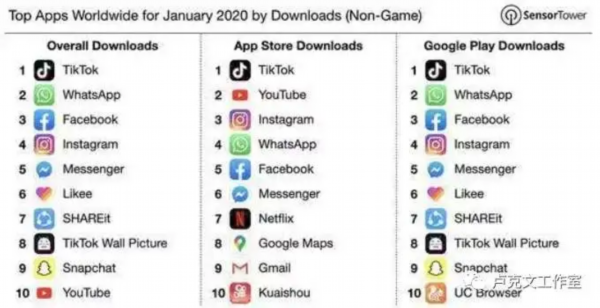 从2020年1月份开始,Tik-Tok就击败了老外们常用的WhatsApp、Facebook、Youtube和Instagram这四大软件,成为全球下载排名第一的APP。这让美国政客们大吃一惊!全球下载量最多的软件里,几乎清一色都是美国公司,现在半路杀出来一个中国公司,还把其它美国社交软件都挤到了后头,这还了得?必须把TikTok扼杀在摇篮里!