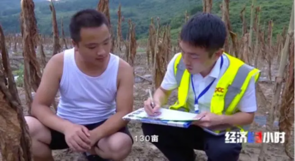 正当他一筹莫展的时候,村委会传来了好消息,去年试点推广的农业巨灾保险,启动核灾赔付程序了。经过保险公司工作人员现场核定,林利俊家130亩烟田全部受损,可以按照每亩1500元的标准,对他进行赔付。按照赔付流程,经过核定公示,10个工作日后,林利俊就能够拿到17万元左右的赔付款。
