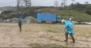 △今天上午10时40分,国网温州市洞头区供电公司员工吴余有顶着狂风在沿海线路寻找故障点。
