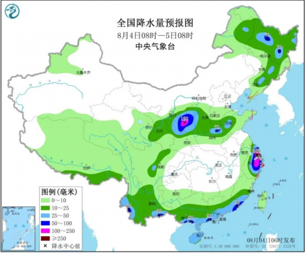 4日4时到7时,浙江温州持续降雨,全市实时雨量45毫米,龙湾、乐清实时降雨量达到100毫米以上。