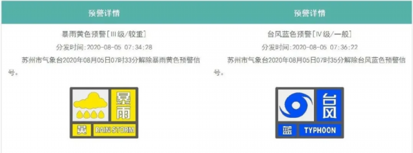 台风远离苏州,影响也趋于结束。苏州于今天7时33分解除暴雨黄色预警,7时35分解除台风蓝色预警,苏州市气象台不再发布台风“黑格比”的消息。