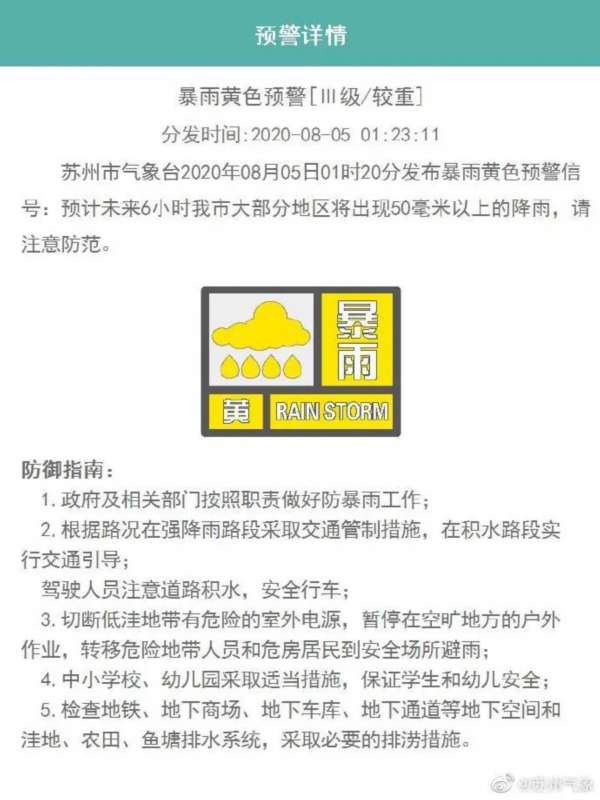 苏州市气象台今天凌晨1时20分发布
