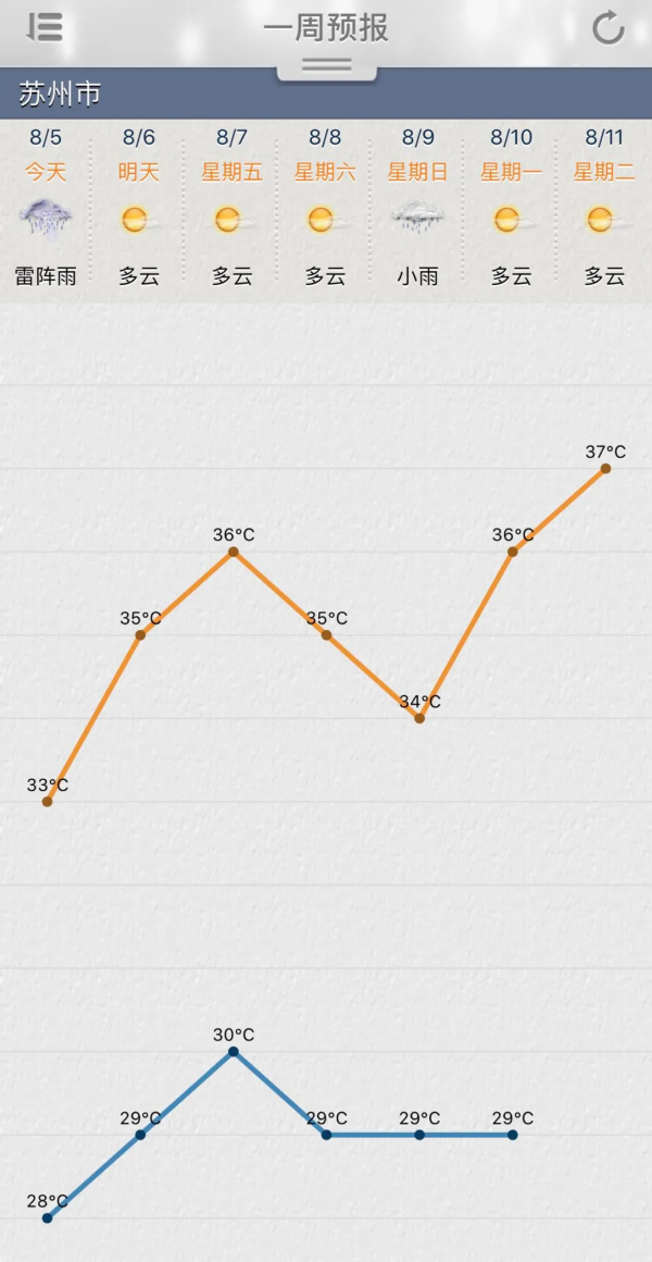 根据苏州市气象台的预报,明天起,苏州转受副热带高压控制,8月6日-8日以晴热高温天气为主,最高气温35~37℃,午后易出现局地雷阵雨天气。