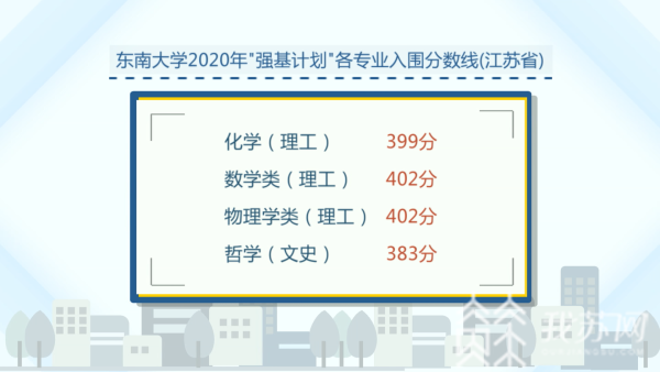 东南大学在江苏化学399分、数学类402分、物理学类402分,哲学383分。
