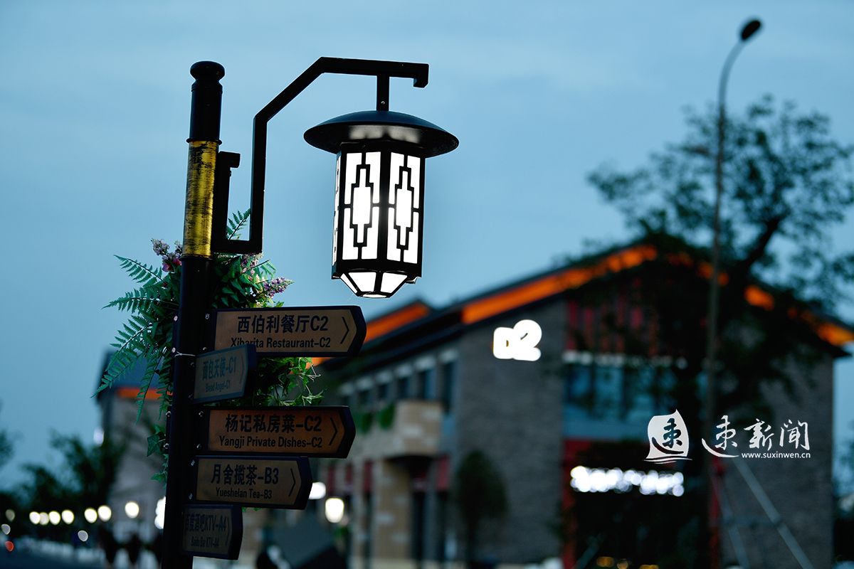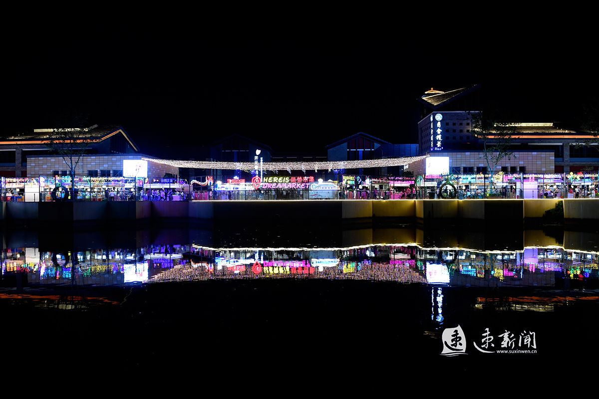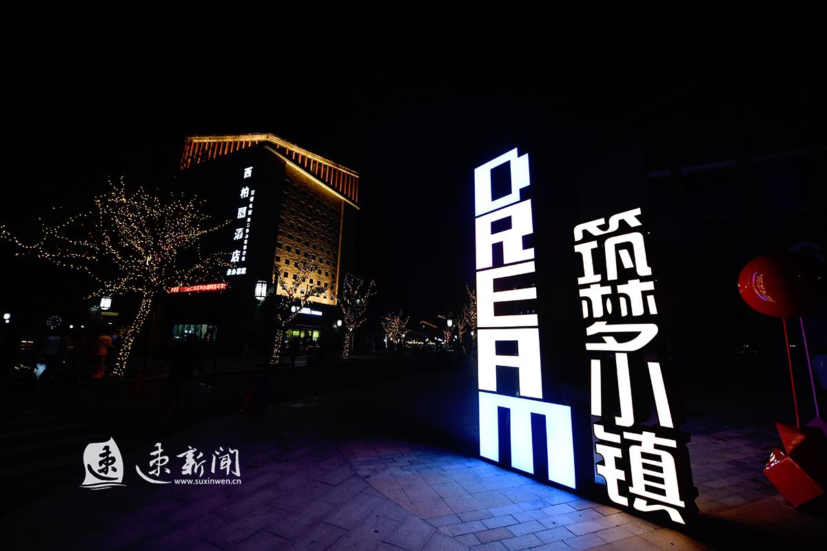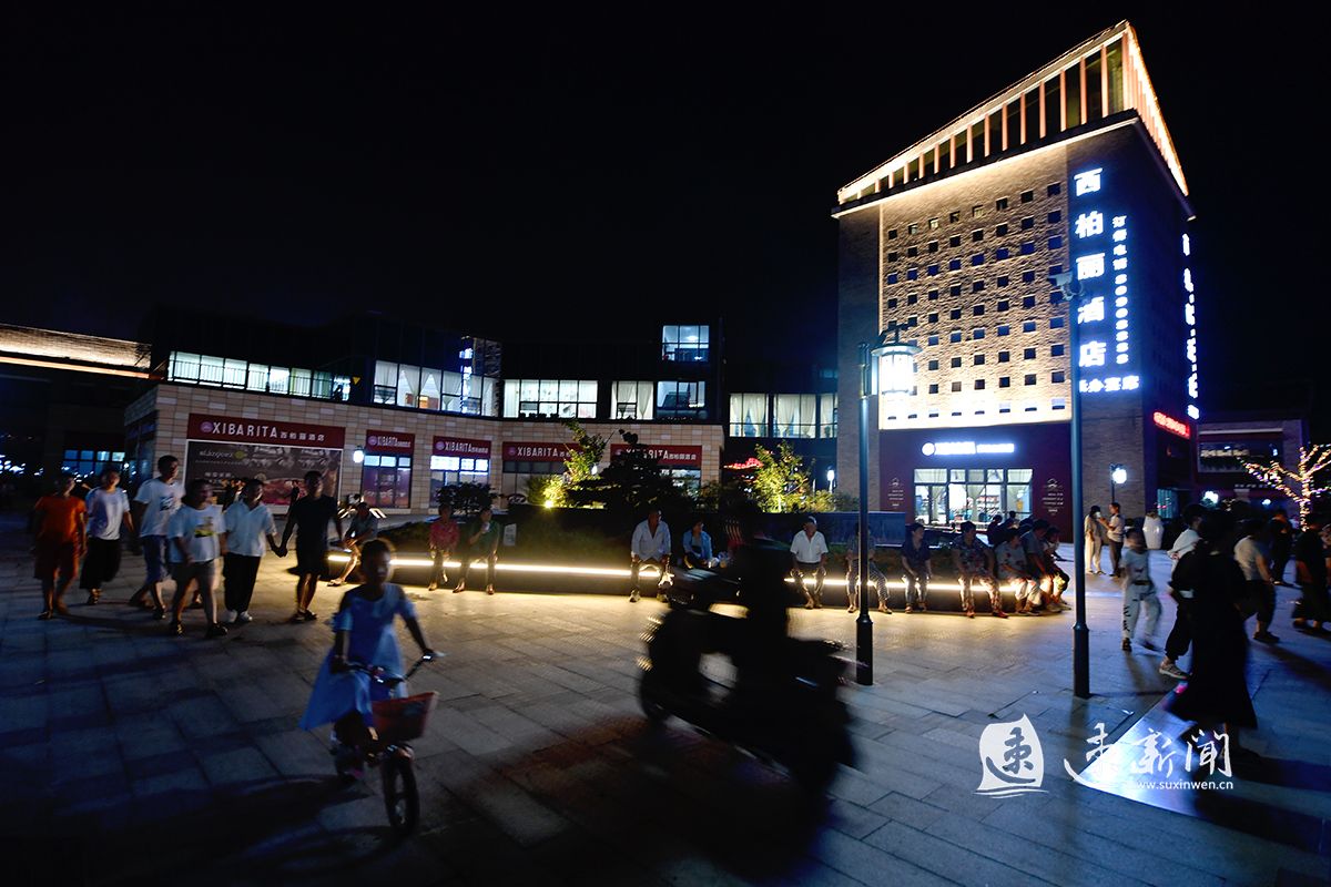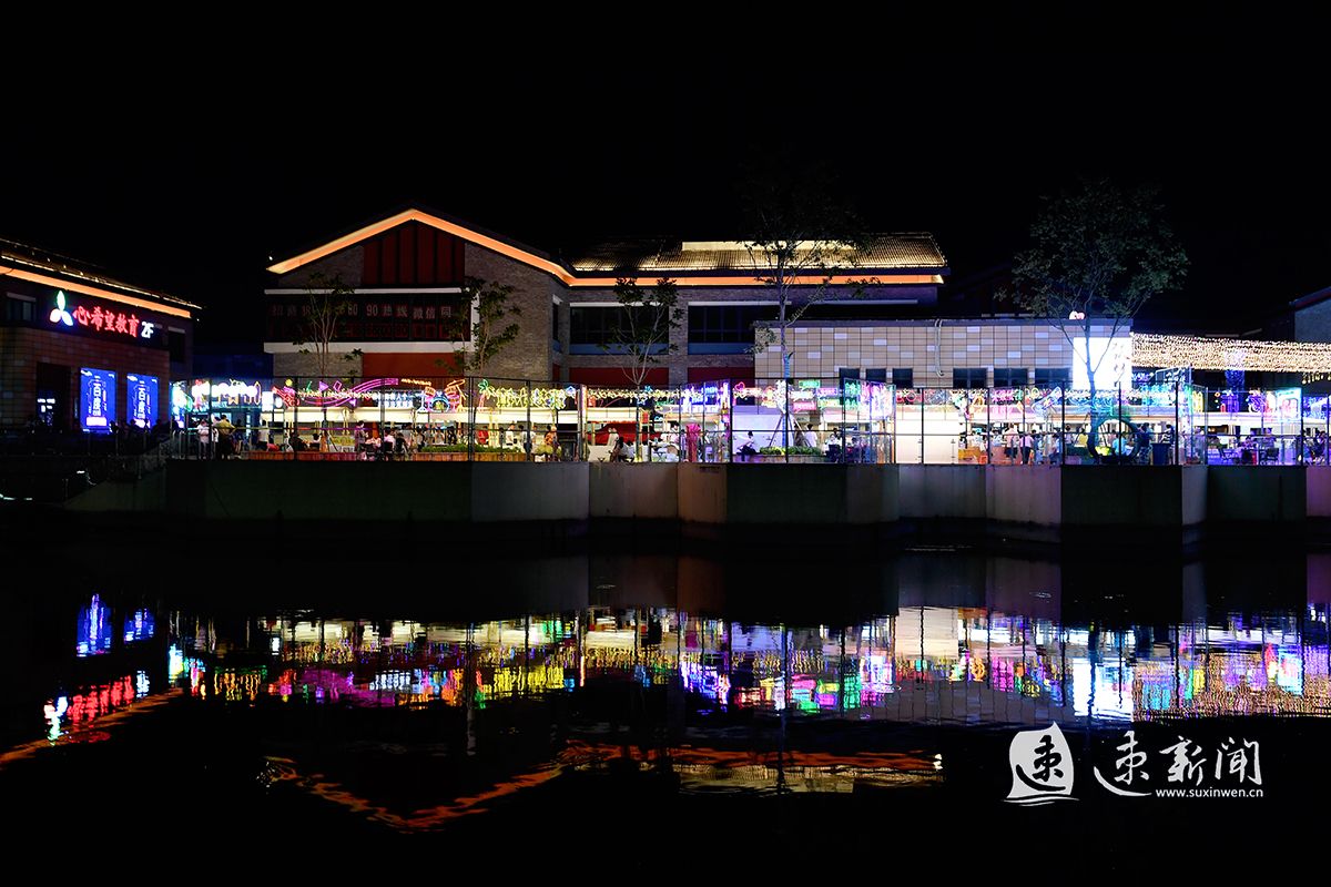 8月4日晚,宿迁电子商务产业园区筑梦小镇内霓虹璀璨、流光溢彩。