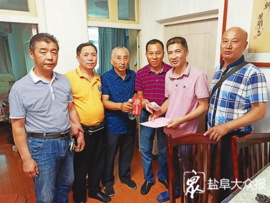 “谢谢大家来看望啊。”8月4日上午,市区通榆南村居民、住院治疗回家不久的锁匠李建贵和妻子,对陆续来到他们家、同为锁匠的宋德永、荣凤祥、宋广民、缪安建、周正虎等人感激地说。作为江苏省锁业协会副会长,宋德永代表大家把15900元爱心款交到李建贵手中,并送上牛奶等慰问品。
