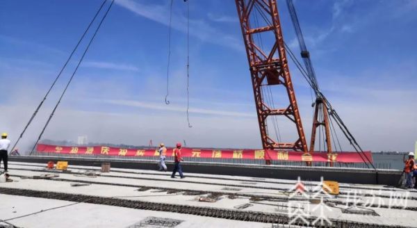 元荡桥工程由苏州吴江区和上海青浦区分别立项审批,上海青浦区负责组织实施。桥梁全长180米,采用复古设计,双向四车道及非机动车道和人行道,桥梁全宽28.5米。本次元荡桥的顺利合龙,标志着长三角一体化融合发展第一个互联互通工程中的关键节点按预期完成目标任务,实现了两地群众多年的盼望。