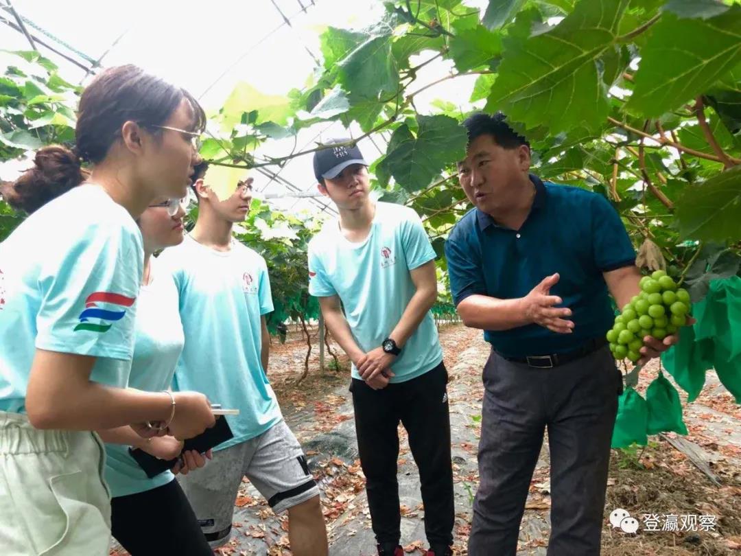 ▲董兆付(右)正在葡萄园指导暑期实践的大学生。(图片由马贤兵提供)