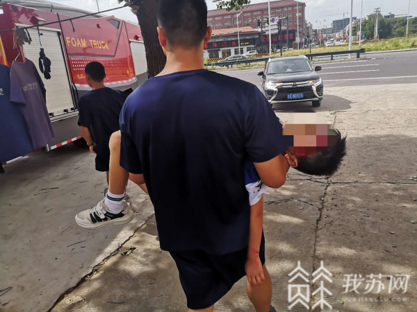 8月6日下午,江阴长泾中队队员例行消防安全巡逻。在香山巡逻时偶遇小朋友意外摔伤,母亲焦急万分。队员见状立即抱起孩子,开动消防车紧急送医。