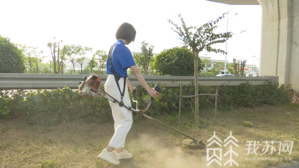 记者刚才也是体验了一下割草工作,师傅告诉她说这个不重,但实际感觉这个机器比本人还要重。割草的时候,手柄一直在剧烈地抖动,如果没有力气根本就控制不住。在打草的时候,草也是疯狂地打到脸上,像地上的砂石也是溅到脸上、裤子上。
