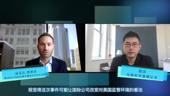 央视记者采访了Modern Impact数字媒体公关公司创始人迈克尔·普利安,交流TikTok案对美国商业环境的影响。迈克尔·普利安认为,TikTok案更多是在挑战当前的数据管理的前提标准。这关乎于名声,也和中美关系的大背景有关。