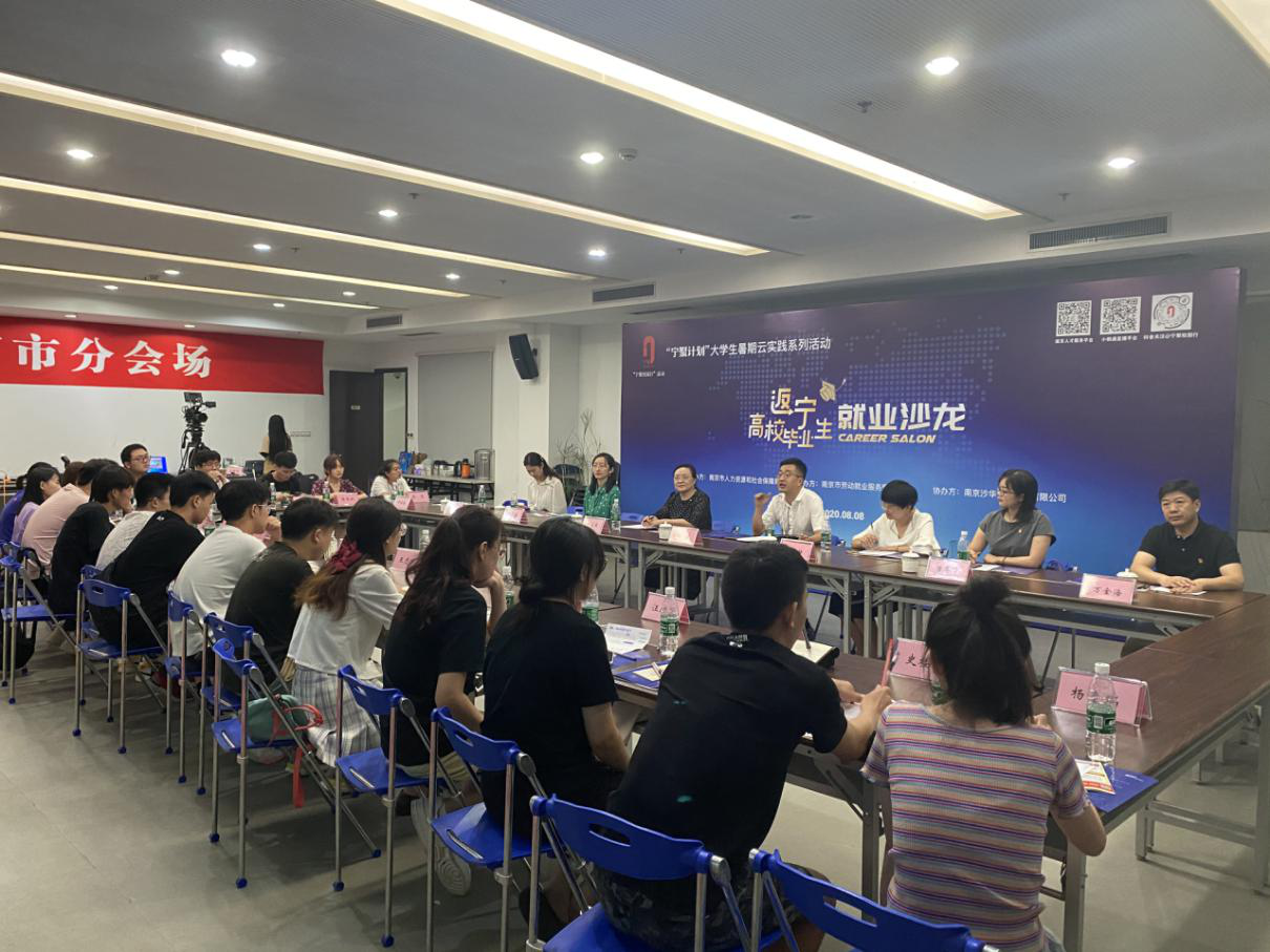 为了帮助返宁大学生们及时了解南京就业形势,提供就业机会,8月8日,由南京人力资源和社会保障局主办,南京市劳动就业服务管理中心承办、南京沙华文化传播有限公司协办的“宁聚计划”大学生暑期云实践系列活动——返宁高校毕业生就业沙龙在南京市人才大厦举行。本次活动邀请了南京大学生涯教育研究中心、南京晓庄学院招生与就业工作处相关负责同志及2020年“宁聚校园行”空中宣讲会部分就业导师与大学生们面对面交流,帮助同学们解决职业定位、就业技巧、简历制作等方面的问题,为秋招做好准备。同时开通线上直播,与大学生们进行线上互动。、