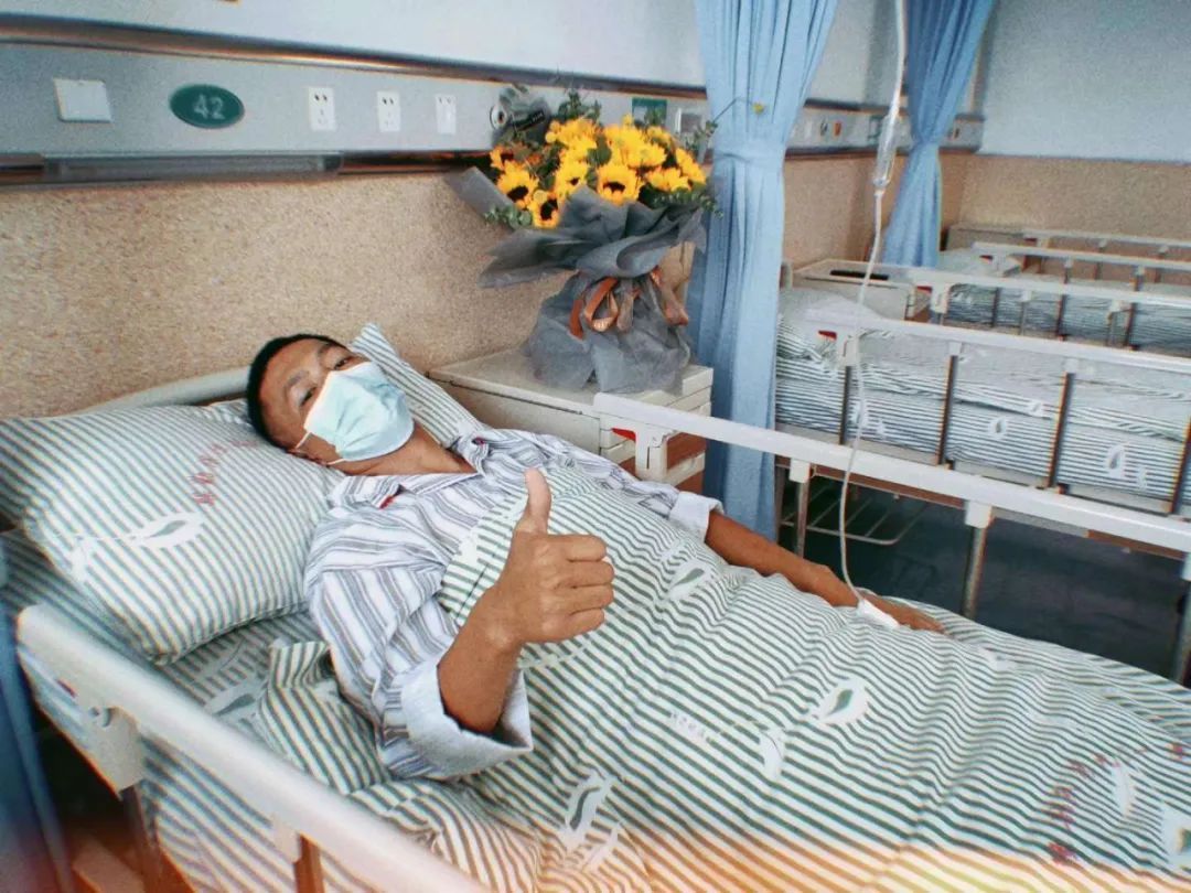 在普通病房庆祝他的“重生”!