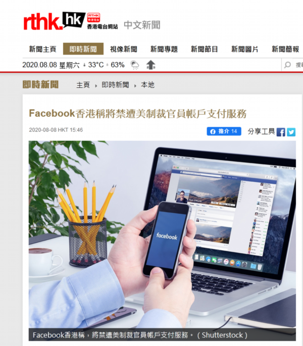 据报道,脸书香港发言人回应查询时声称,任何脸书账户一旦被美国政府的外国资产控制办公室列入其特别指定国民及被阻禁者名单(SDNs)进行管控,脸书有法律责任对这些账户采取行动。