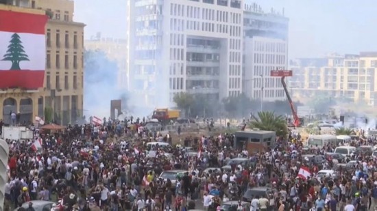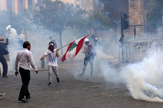 据法新社稍早前报道,当地时间8日,数千名抗议者聚集在黎巴嫩首都贝鲁特市中心,表达对政府在处理4日发生的大爆炸事故的愤怒和不满,大呼“人民要推翻政权”,称“这场毁灭整个城市并震惊世界的爆炸是黎巴嫩政府无能和腐败的直接后果”。他们向警方抛掷石块和棍棒,警方则使用催泪瓦斯进行驱散。而据英国天空新闻,黎巴嫩军方也已加入警方队伍进行支援。
