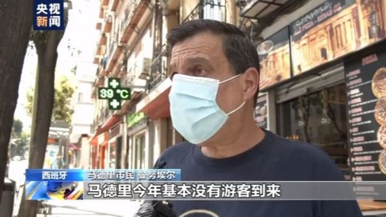 马德里市民 曼努埃尔:就目前状况而言,马德里今年基本没有游客到来,这里没什么人。去年8月,马德里来了很多外国游客,今年几乎没有,马德里这座城几乎空了。
