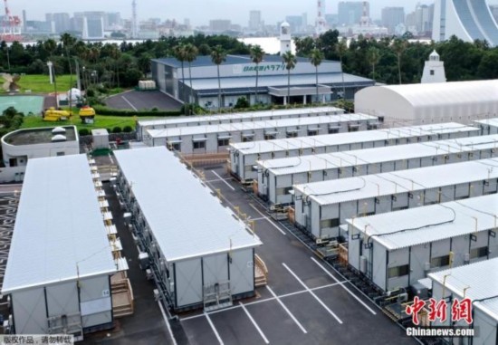 资料图:当地时间2020年7月30日,日本东京在停车场上搭建帐篷,收容新冠肺炎轻症患者。