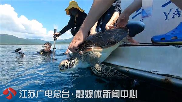 江苏台记者 陈渝娜:“这里是海南省陵水县分界洲岛,很快,99只大大的萌萌的海龟就要被解开束缚,放归大海。这其中就包括江苏检察机关移送救助的29只海龟,今天他们的健康状况和适应野外生存的能力都恢复的不错,已经符合了回归大海的条件,他们终于可以回家了。”