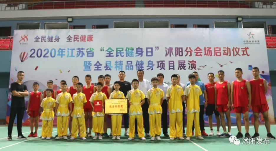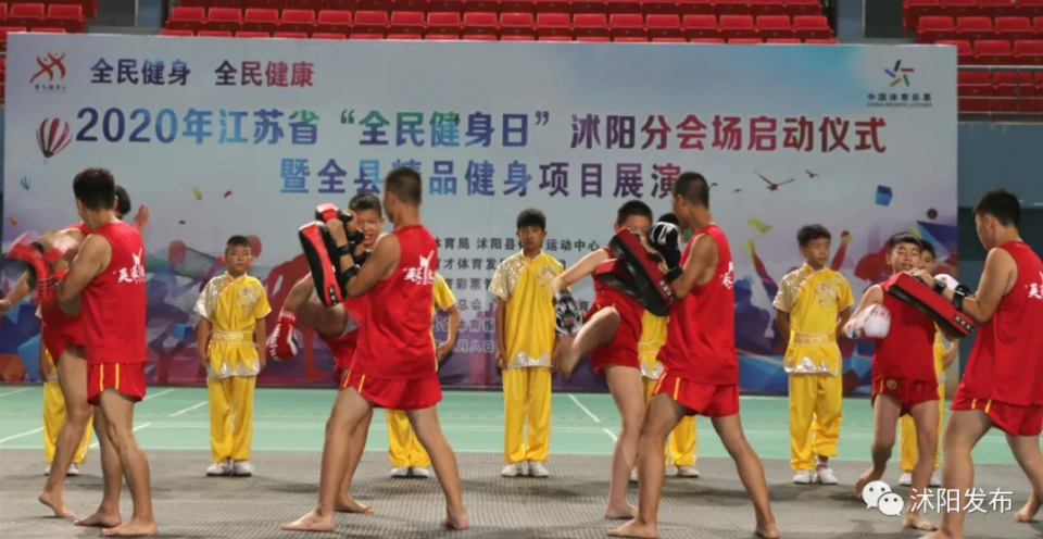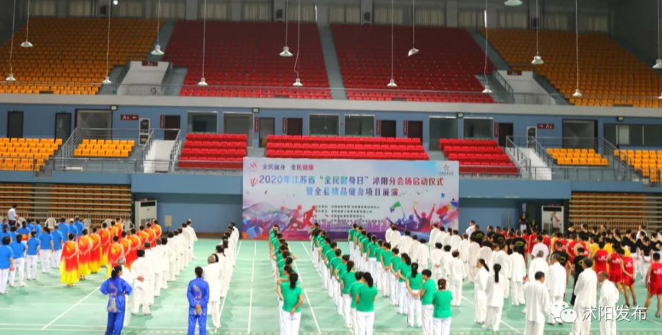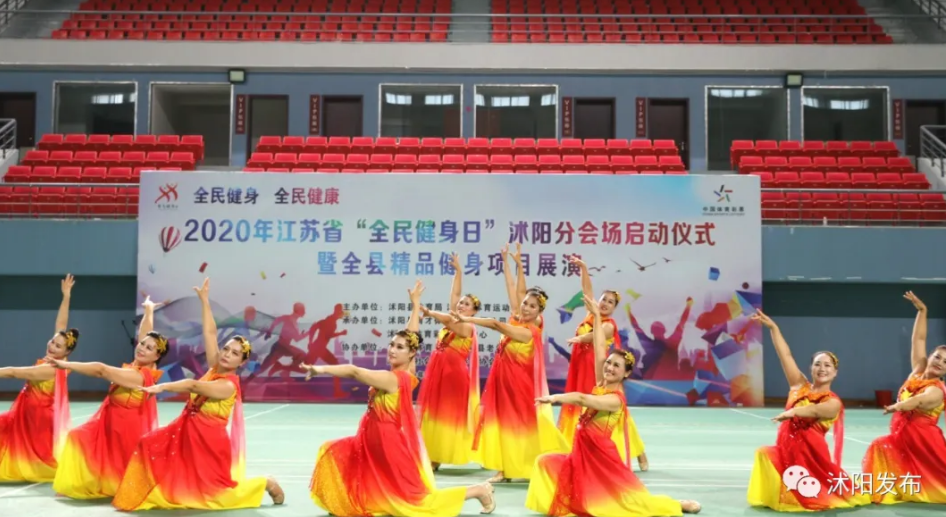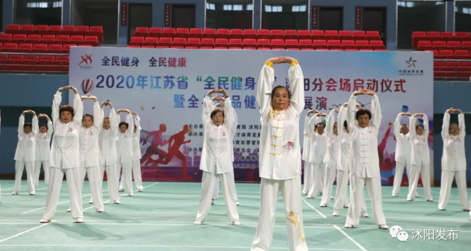 这是在举行2020年江苏省“全民健身日”沭阳分会场启动仪式暨全县精品健身项目展演活动。