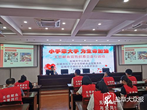 为助力创建全国文明城市,此次,盐城市中心血站、盐城市红十字会无偿献血志愿服务队、亭湖区好人志愿者协会联合开展“小手牵大手 为生命加油”无偿献血宣传招募公益行活动,当天有40户爱心家庭受邀参观血站,家长们积极报名,40名家长成功献血。